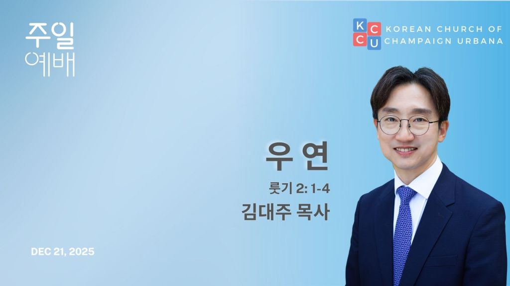 샴페인어바나 한인교회 설교 동영상 날짜: 2025년 12월 21일 주일 분류: 주일예배 설교자: 김대주 목사 제목: 우 연 본문: 룻기 2: 1-4
