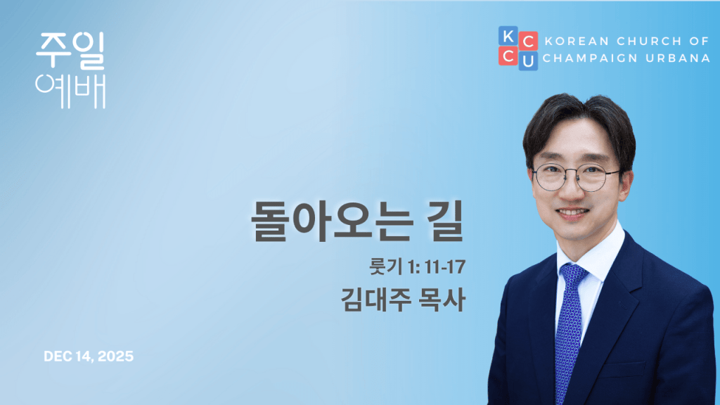 샴페인어바나 한인교회 설교 동영상 날짜: 2025년 12월 14일 주일 분류: 주일예배 설교자: 김대주 목사 제목: 돌아오는 길 본문: 룻기 1: 11-17