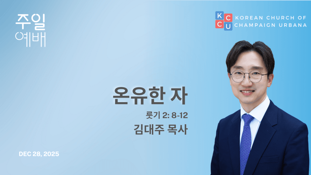 샴페인어바나 한인교회 설교 동영상 날짜: 2025년 12월 28일 주일 분류: 주일예배 설교자: 김대주 목사 제목: 온유한 자 본문: 룻기 2: 8-12