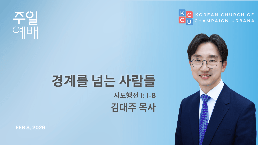 샴페인어바나 한인교회 설교 동영상 날짜: 2026년 2월 1일 주일 분류: 주일예배 설교자: 김대주 목사 제목: 경계를 넘는 사람들 본문: 사도행전 1: 1-8
